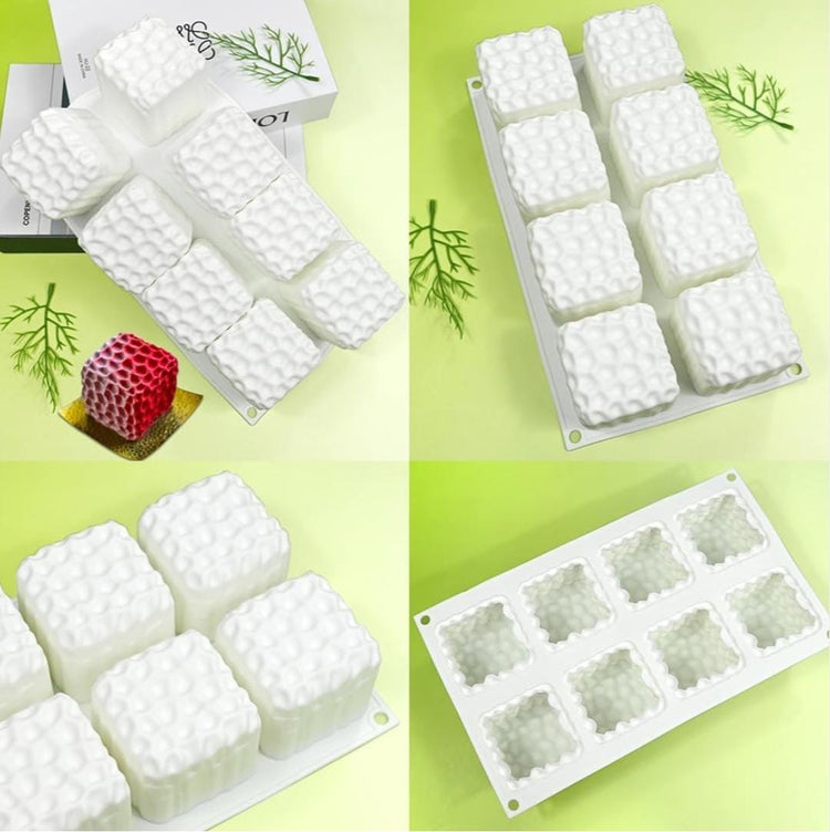 Bakeawreind 3D Cube Honeycomb Mousse Cake Silicone Mould, 8 Cavity