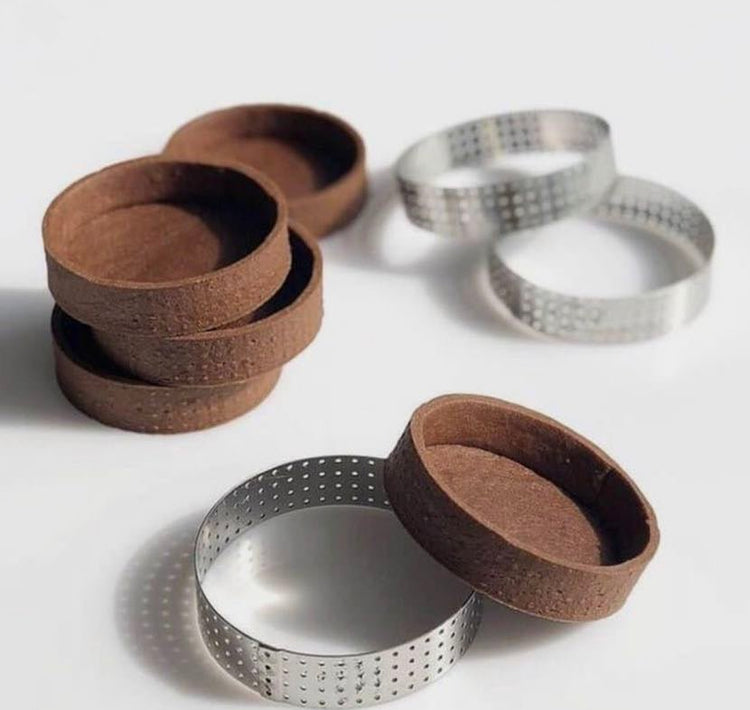 Our Perforated Tart rings are perfect for shortbreads, mousse, puffs, cakes and shortcrust pastries. The rings are dotted with holes to evenly cook the tart edges. The rings are flexible for an easy release and will always return to its original shape.