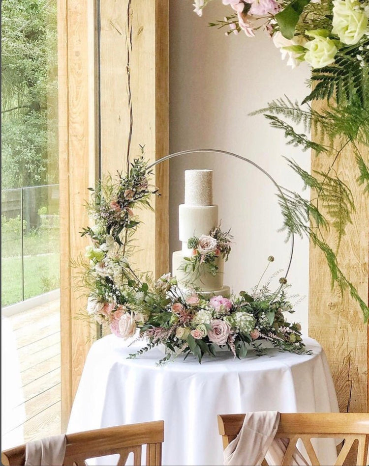 Round hoop cake stand with square base